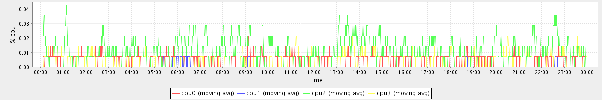 avg(cpu0) = 0.01 avg(cpu1) = 0.01 avg(cpu2) = 0.00 avg(cpu3) = 0.00