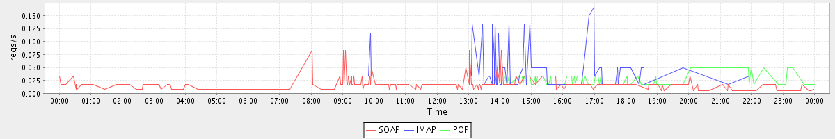 Host pobox20.stanford.edu: Mailboxd: Request Rate by Client Protocol