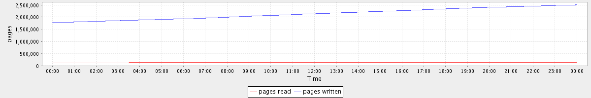 avg(pages read) = 133106.37 avg(pages written) = 2138048.63