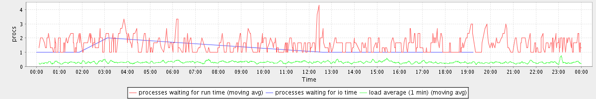avg(processes waiting for run time) = 0.40 avg(processes waiting for io time) = 0.00 avg(load average (1 min)) = 0.30