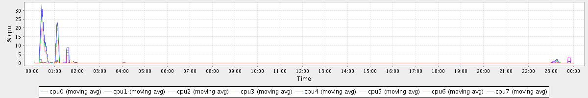 avg(cpu0) = 0.01 avg(cpu1) = 0.43 avg(cpu2) = 0.39 avg(cpu3) = 0.01 avg(cpu4) = 0.08 avg(cpu5) = 0.01 avg(cpu6) = 0.24 avg(cpu7) = 0.02