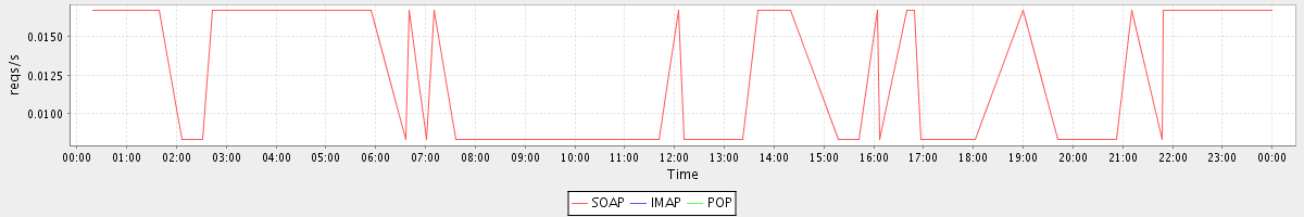 Host zm04.stanford.edu: Mailboxd: Request Rate by Client Protocol