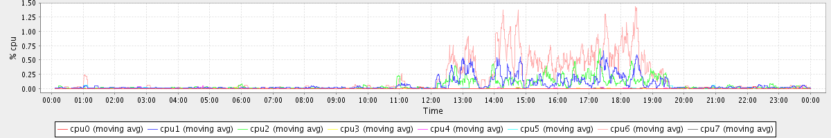 avg(cpu0) = 0.36 avg(cpu1) = 0.26 avg(cpu2) = 0.20 avg(cpu3) = 0.26 avg(cpu4) = 0.16 avg(cpu5) = 0.11 avg(cpu6) = 0.14 avg(cpu7) = 0.09
