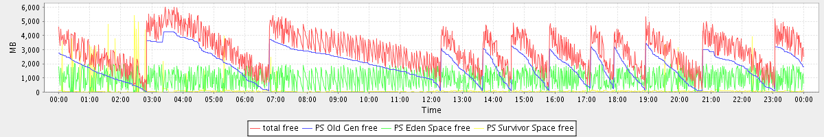 avg(total free) = 2944.77 avg(PS Old Gen free) = 1930.30 avg(PS Eden Space free) = 948.27 avg(PS Survivor Space free) = 110.89