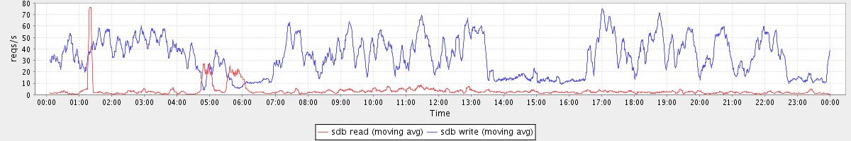 avg(sdb read) = 3.15 avg(sdb write) = 32.06