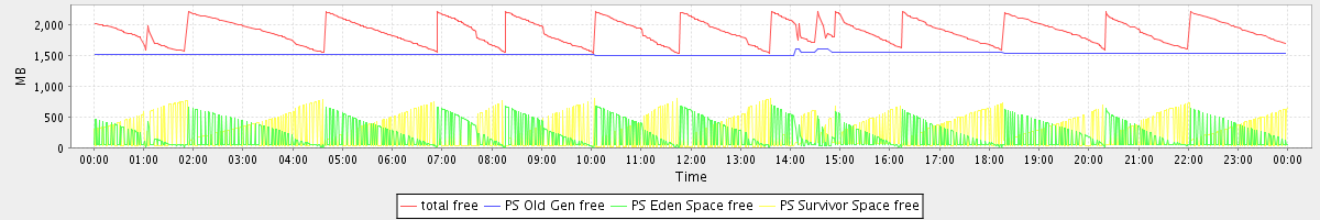 avg(total free) = 1885.14 avg(PS Old Gen free) = 1519.29 avg(PS Eden Space free) = 184.15 avg(PS Survivor Space free) = 240.99