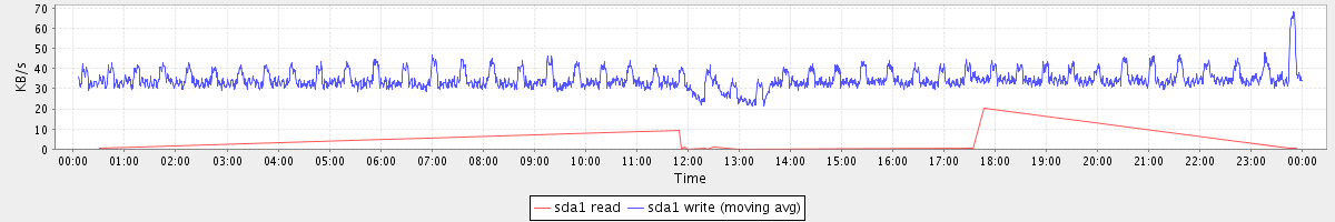 avg(sda1 read) = 0.01 avg(sda1 write) = 34.55