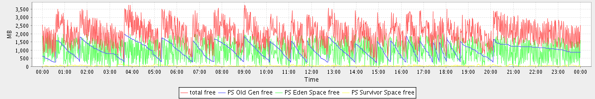 avg(total free) = 2015.49 avg(PS Old Gen free) = 997.93 avg(PS Eden Space free) = 974.20 avg(PS Survivor Space free) = 43.36
