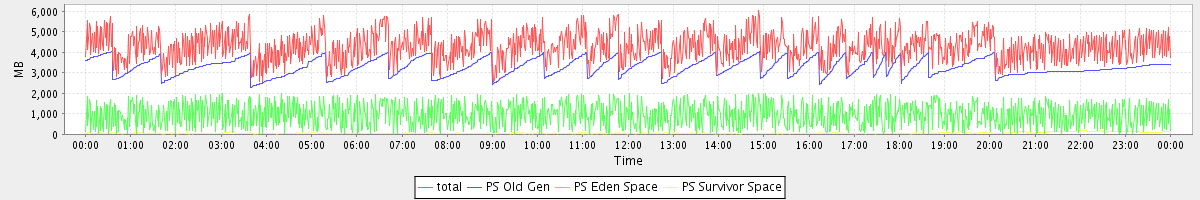 avg(total) = 4284.79 avg(PS Old Gen) = 3274.07 avg(PS Eden Space) = 954.92 avg(PS Survivor Space) = 55.80