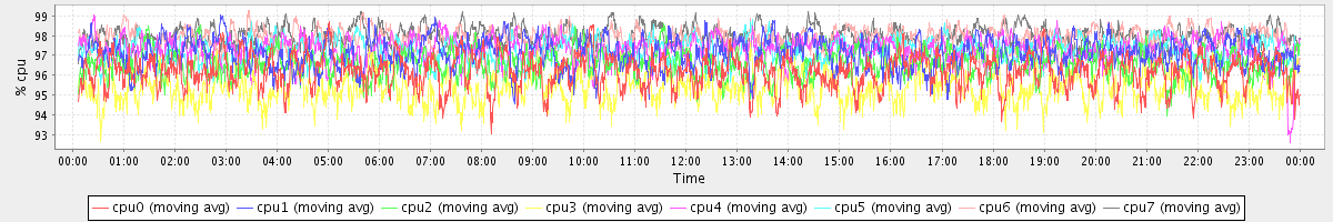 avg(cpu0) = 96.19 avg(cpu1) = 97.12 avg(cpu2) = 96.59 avg(cpu3) = 95.40 avg(cpu4) = 97.29 avg(cpu5) = 97.23 avg(cpu6) = 97.85 avg(cpu7) = 97.96