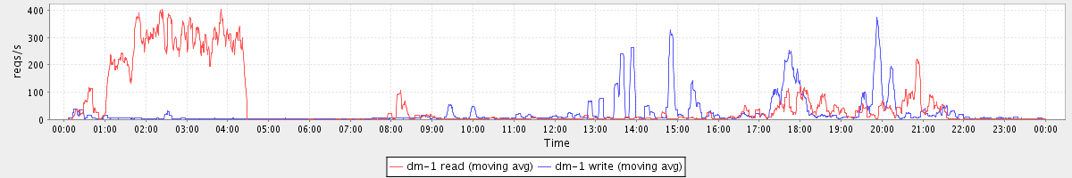 avg(dm-0 read) = 856.74 avg(dm-0 write) = 592.10