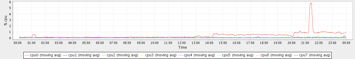 avg(cpu0) = 0.05 avg(cpu1) = 0.00 avg(cpu2) = 0.01 avg(cpu3) = 0.01 avg(cpu4) = 0.02 avg(cpu5) = 0.00 avg(cpu6) = 0.00 avg(cpu7) = 0.00