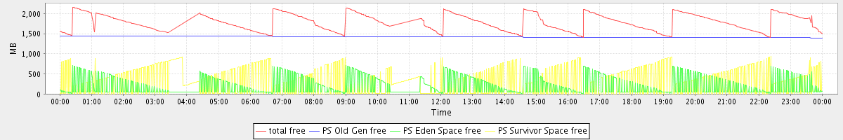 avg(total free) = 1778.69 avg(PS Old Gen free) = 1419.97 avg(PS Eden Space free) = 184.49 avg(PS Survivor Space free) = 304.80