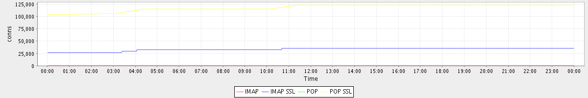avg(IMAP) = 9.06 avg(IMAP SSL) = 26837.01 avg(POP) = 903.19 avg(POP SSL) = 94860.99