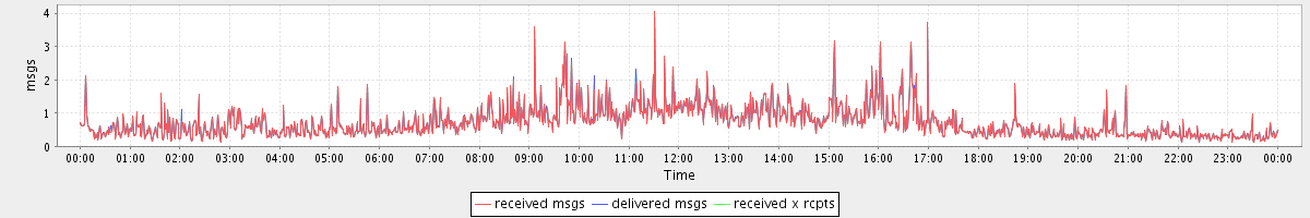 avg(received msgs) = 0.72 avg(delivered msgs) = 0.73 avg(received x rcpts) = 0.73
