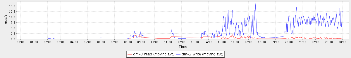 avg(dm-3 read) = 0.74 avg(dm-3 write) = 8.83