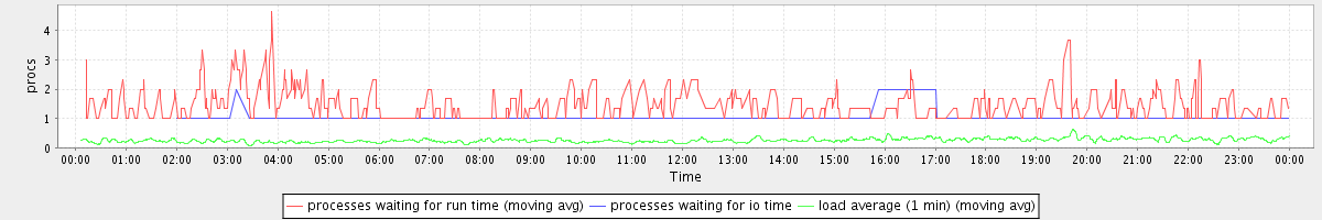 avg(processes waiting for run time) = 0.40 avg(processes waiting for io time) = 0.01 avg(load average (1 min)) = 0.25