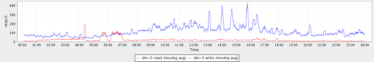 avg(dm-0 read) = 20.02 avg(dm-0 write) = 112.92