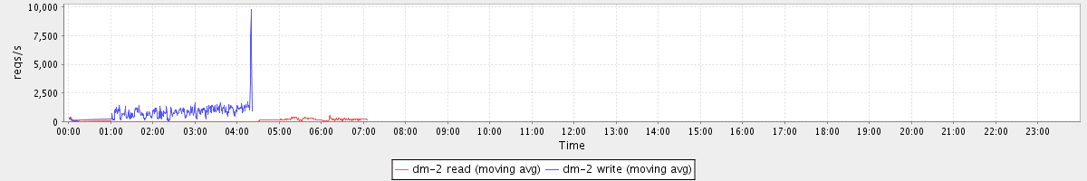 avg(dm-1 read) = 887.69 avg(dm-1 write) = 107.00