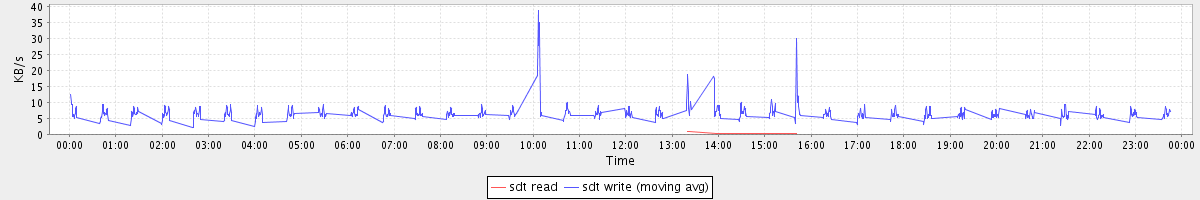 avg(sda1 read) = 0.41 avg(sda1 write) = 33.45