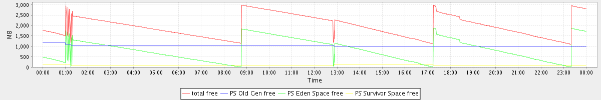 avg(total free) = 1960.15 avg(PS Old Gen free) = 1032.71 avg(PS Eden Space free) = 826.57 avg(PS Survivor Space free) = 100.88