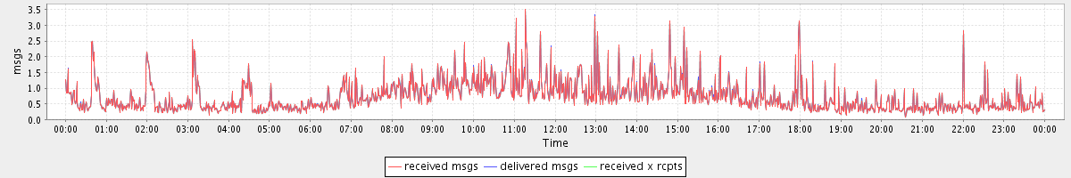 avg(received msgs) = 0.73 avg(delivered msgs) = 0.73 avg(received x rcpts) = 0.73