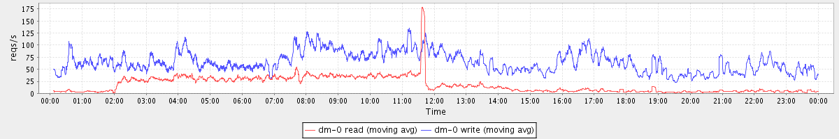 avg(dm-1 read) = 3444.71 avg(dm-1 write) = 286.66