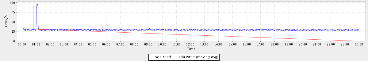 avg(sda read) = 0.06 avg(sda write) = 29.15