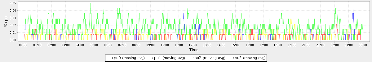 avg(cpu0) = 0.03 avg(cpu1) = 0.07 avg(cpu2) = 0.01 avg(cpu3) = 0.00