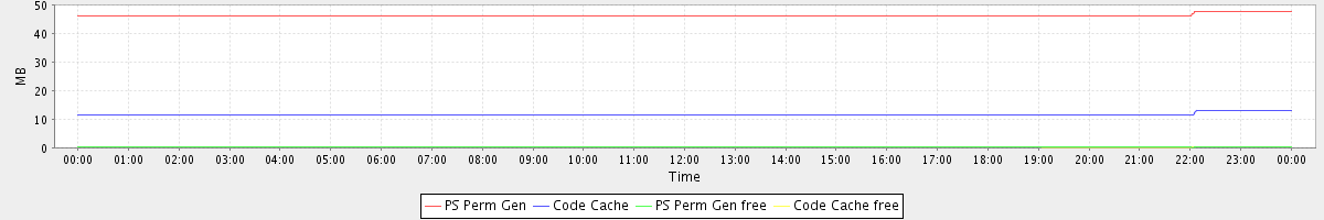 avg(PS Perm Gen) = 46.39 avg(Code Cache) = 11.46 avg(PS Perm Gen free) = 0.17 avg(Code Cache free) = 0.17