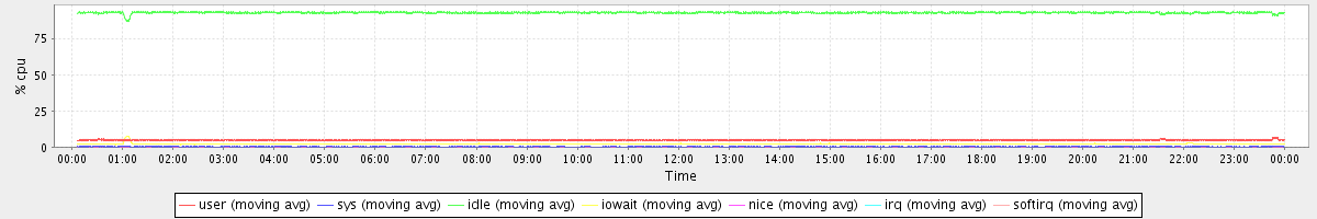 avg(user) = 4.77 avg(sys) = 0.28 avg(idle) = 92.76 avg(iowait) = 2.16 avg(nice) = 0.00 avg(irq) = 0.00 avg(softirq) = 0.00