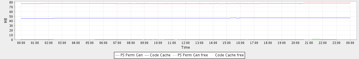 avg(PS Perm Gen) = 77.43 avg(Code Cache) = 46.15 avg(PS Perm Gen free) = 0.38 avg(Code Cache free) = 0.29