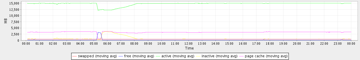 avg(swapped) = 498.45 avg(free) = 118.35 avg(active) = 14713.98 avg(inactive) = 717.48 avg(page cache) = 3262.33
