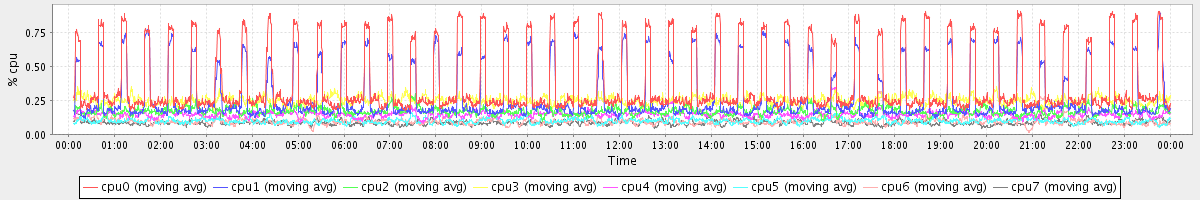 avg(cpu0) = 0.37 avg(cpu1) = 0.28 avg(cpu2) = 0.17 avg(cpu3) = 0.25 avg(cpu4) = 0.15 avg(cpu5) = 0.10 avg(cpu6) = 0.09 avg(cpu7) = 0.09