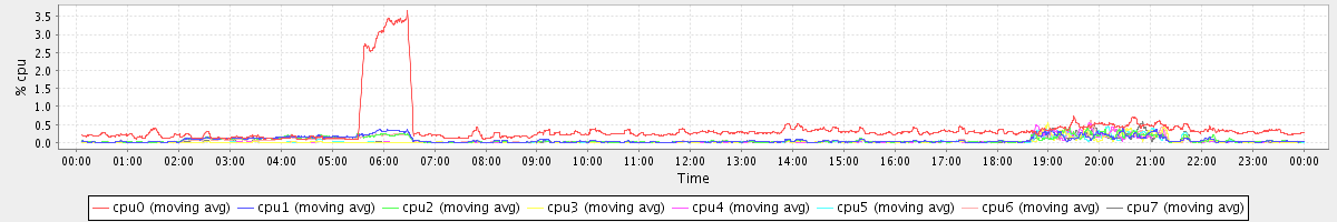 avg(cpu0) = 0.39 avg(cpu1) = 0.07 avg(cpu2) = 0.07 avg(cpu3) = 0.03 avg(cpu4) = 0.03 avg(cpu5) = 0.03 avg(cpu6) = 0.06 avg(cpu7) = 0.03