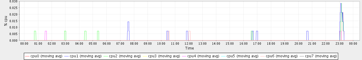 avg(cpu0) = 0.00 avg(cpu1) = 0.24 avg(cpu2) = 0.20 avg(cpu3) = 0.00 avg(cpu4) = 0.07 avg(cpu5) = 0.00 avg(cpu6) = 0.13 avg(cpu7) = 0.00