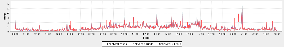 avg(received msgs) = 0.81 avg(delivered msgs) = 0.82 avg(received x rcpts) = 0.82