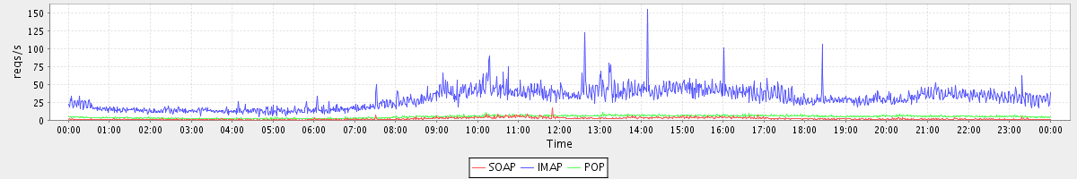 Host zm01.stanford.edu: Mailboxd: Request Rate by Client Protocol