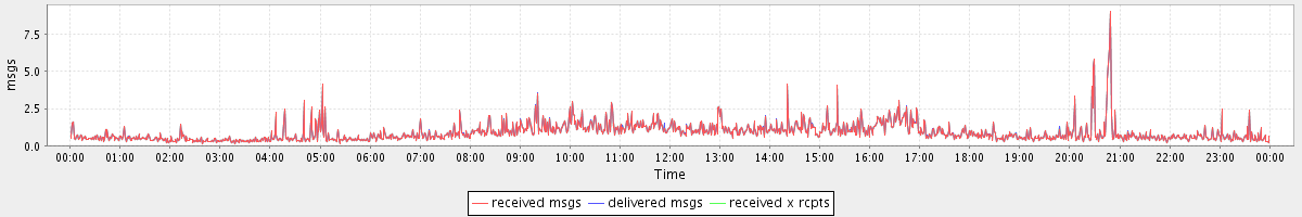 avg(received msgs) = 0.89 avg(delivered msgs) = 0.90 avg(received x rcpts) = 0.90