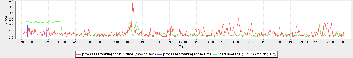 avg(processes waiting for run time) = 1.37 avg(processes waiting for io time) = 0.11 avg(load average (1 min)) = 1.35