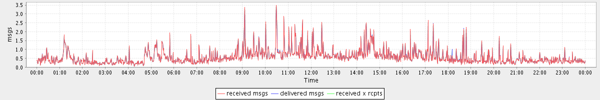 avg(received msgs) = 0.57 avg(delivered msgs) = 0.58 avg(received x rcpts) = 0.58