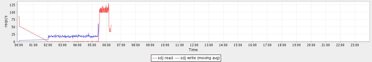 avg(sda read) = 20.02 avg(sda write) = 36.26