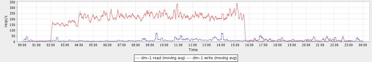 avg(dm-1 read) = 3645.04 avg(dm-1 write) = 52.92