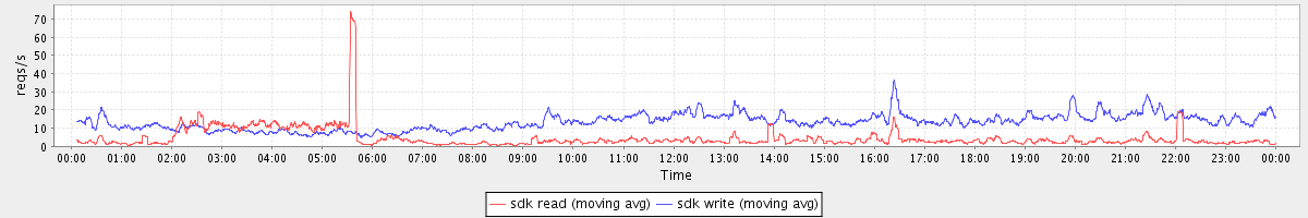 avg(sdk read) = 73.42 avg(sdk write) = 358.97