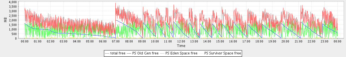 avg(total free) = 1830.44 avg(PS Old Gen free) = 827.42 avg(PS Eden Space free) = 964.90 avg(PS Survivor Space free) = 38.12