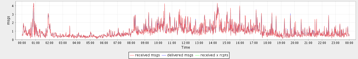 avg(received msgs) = 0.96 avg(delivered msgs) = 0.97 avg(received x rcpts) = 0.97