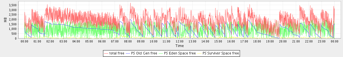 avg(total free) = 1887.98 avg(PS Old Gen free) = 895.77 avg(PS Eden Space free) = 931.33 avg(PS Survivor Space free) = 60.88