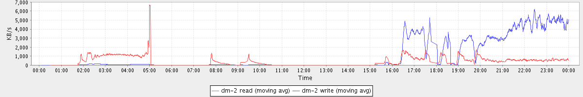 avg(dm-2 read) = 396.52 avg(dm-2 write) = 1061.92