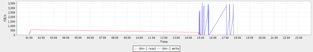 avg(dm-1 read) = 0.39 avg(dm-1 write) = 6.65