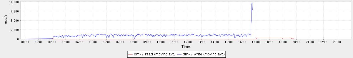 avg(dm-2 read) = 23.15 avg(dm-2 write) = 635.22